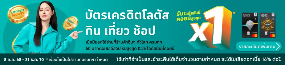 • รายการส่งเสริมการขายนี้สำหรับบัตรเครดิตโลตัส ทุกประเภท