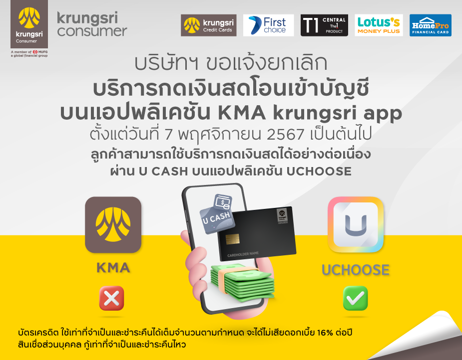 แจ้งยกเลิกบริการกดเงินสดโอนเข้าบัญชี