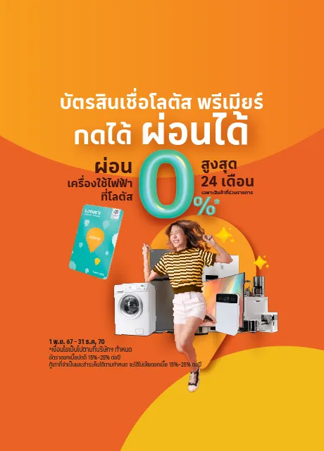 ผ่อนเครื่องใช้ไฟฟ้า ผ่อนประกันภัยที่โลตัส ผ่อนสินค้าและบริการจากร้านค้าชั้นนำทั่วประเทศ