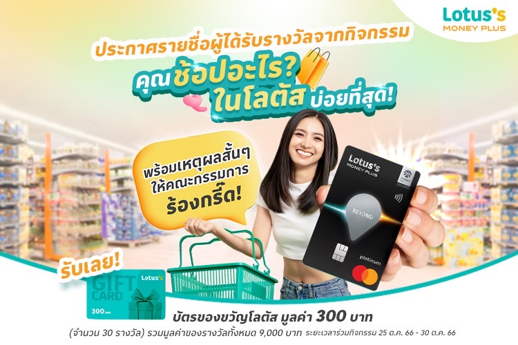 ประกาศรายชื่อผู้ที่ได้รับรางวัลจากกิจกรรม “คุณช้อปอะไร? ในโลตัสบ่อยที่สุด!”