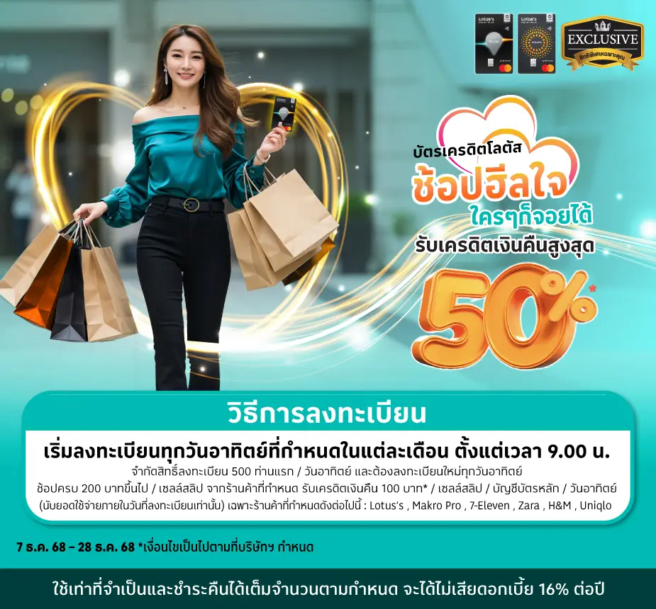 ช้อปฮีลใจ ใครๆ ก็จอยได้ รับเครดิตเงินคืนสูงสุด 50%*