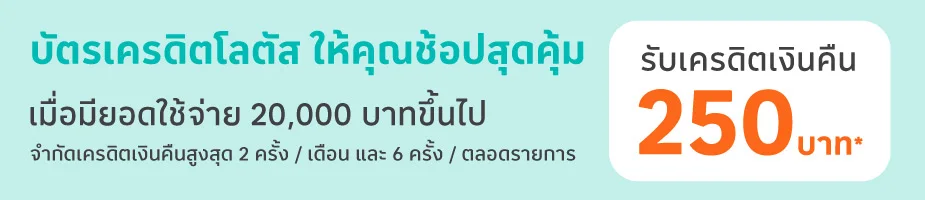 • สงวนสิทธิ์เครดิตเงินคืนสูงสุด 500 บาทต่อเดือน และ 1,500 บาท/บัญชีบัตรหลัก/ตลอดรายการ
